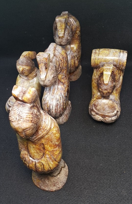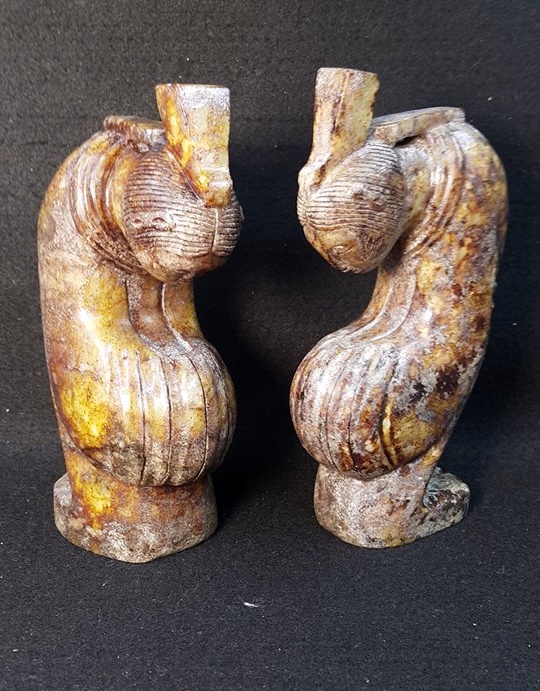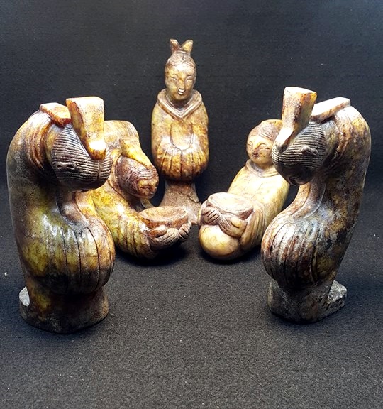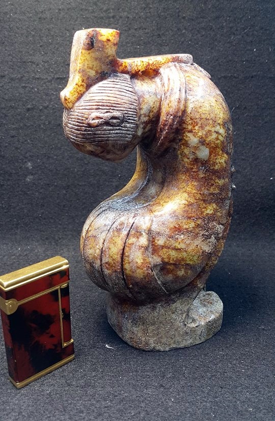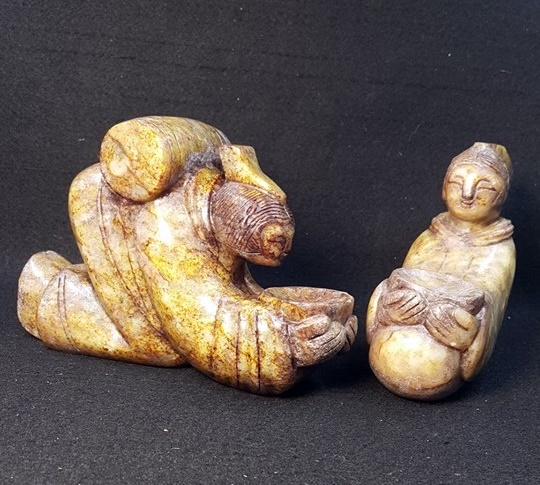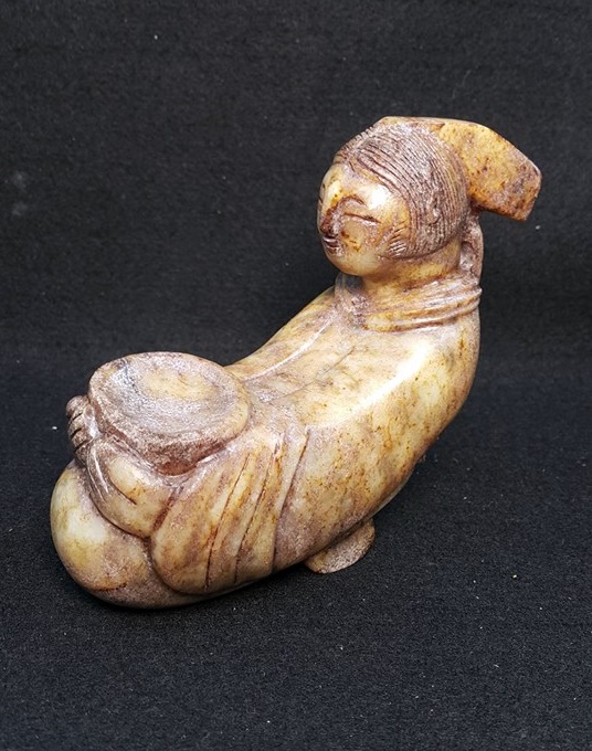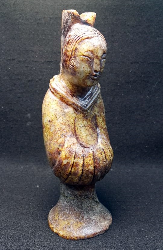 從臉部特徵和唐服裝扮,並以和田白玉所雕琢的恃浴俑,