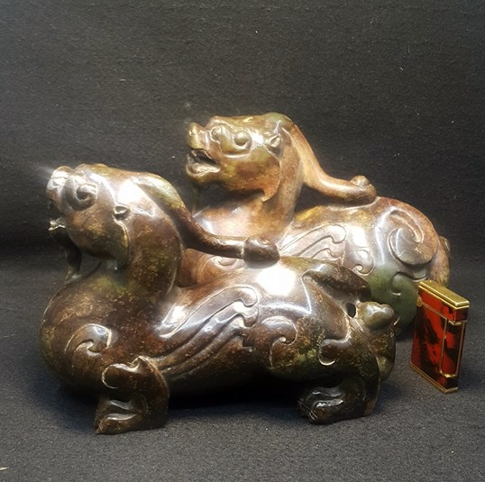漢代-雌雄瑞獸-青玉