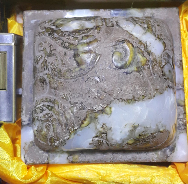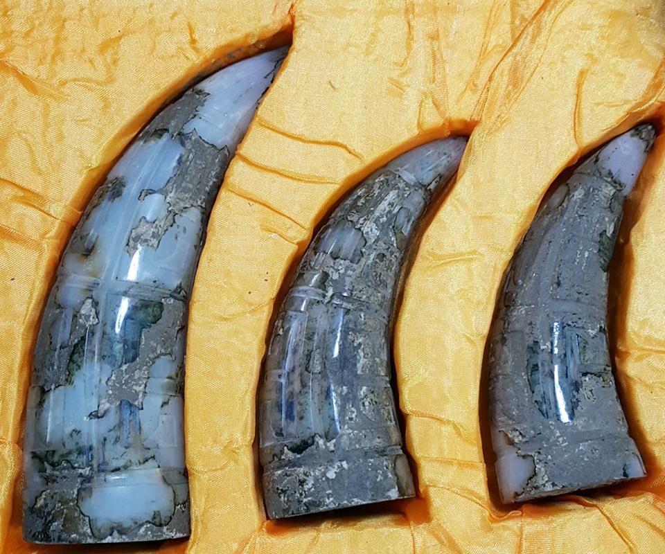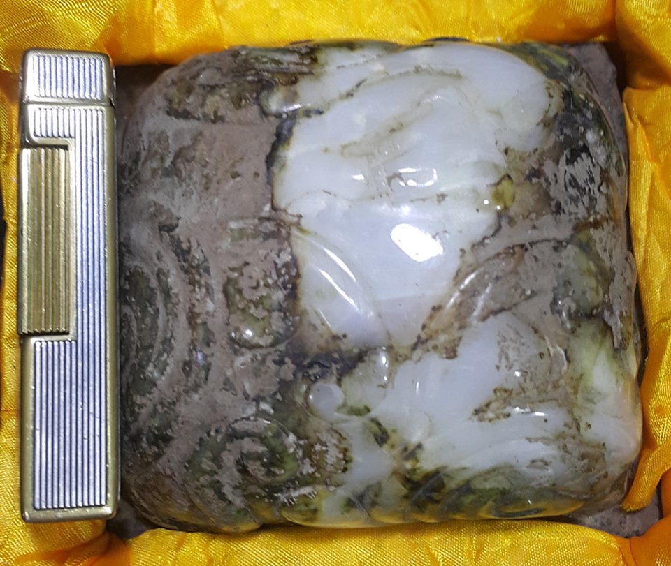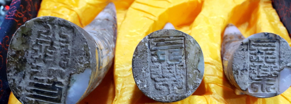 另3件為羊角型制雕制,並雕有長樂2字的玉印,