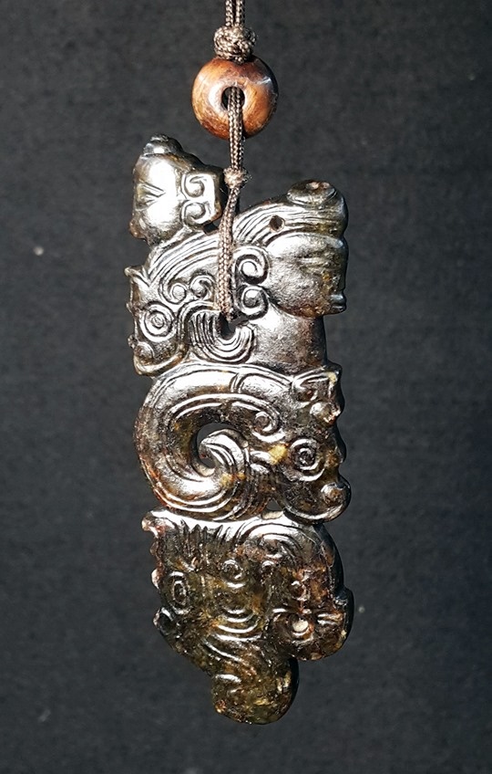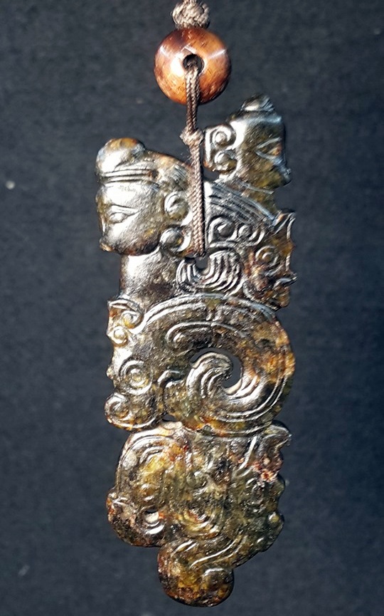 西周-龍鳳神人珮-黑漆古