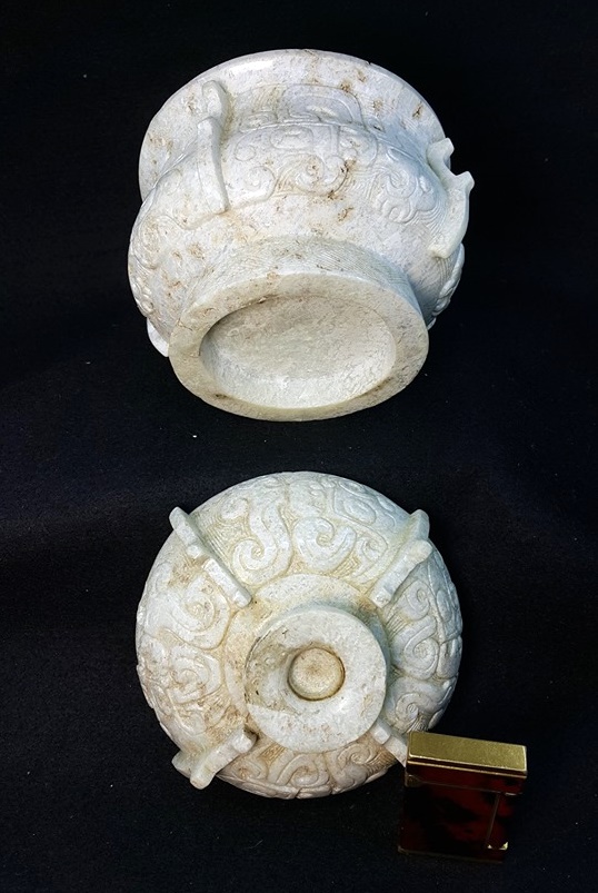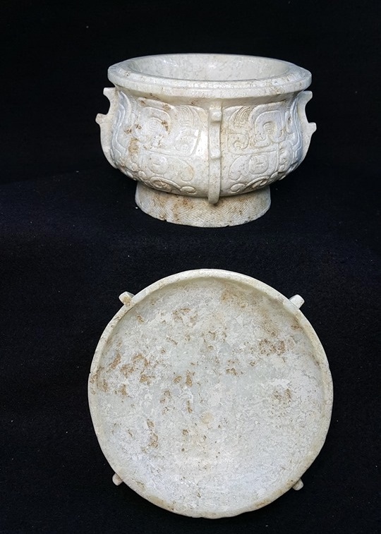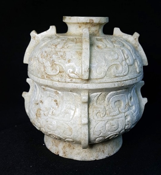 而本館今日所展這件以白玉雕琢而成的鶚的蓋罐,
