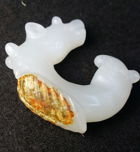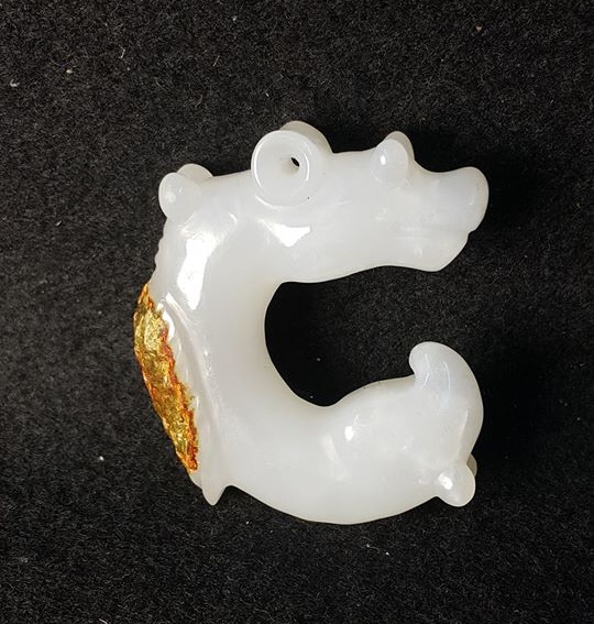 值得一提的是這件C型龍鳳珮的龍背上有隻蟬,