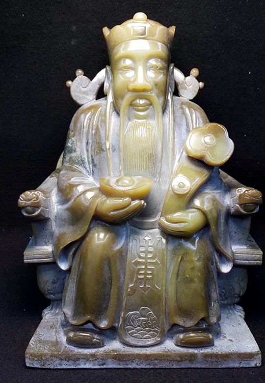 而今日這件從服飾和整體塑像分析,應屬明代五路財神之首 趙公明,