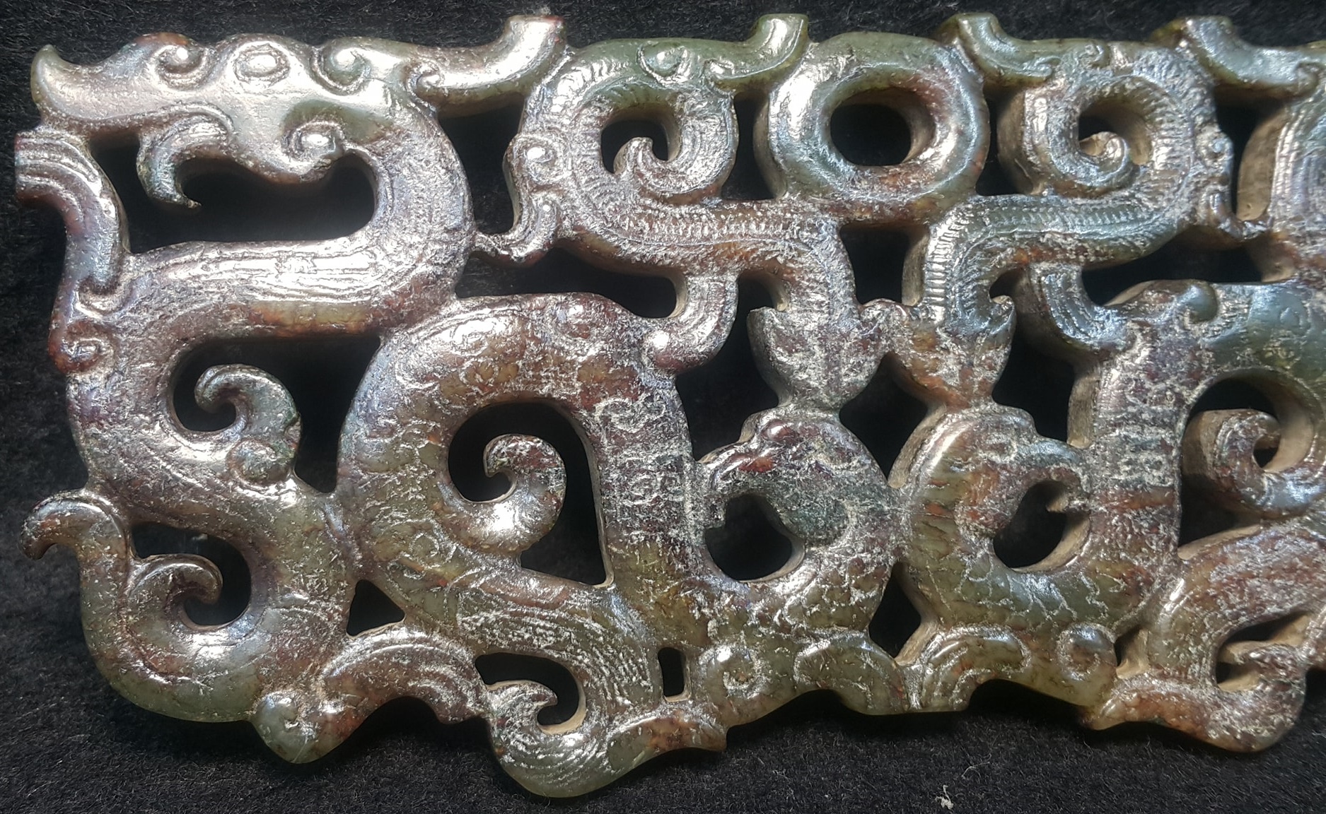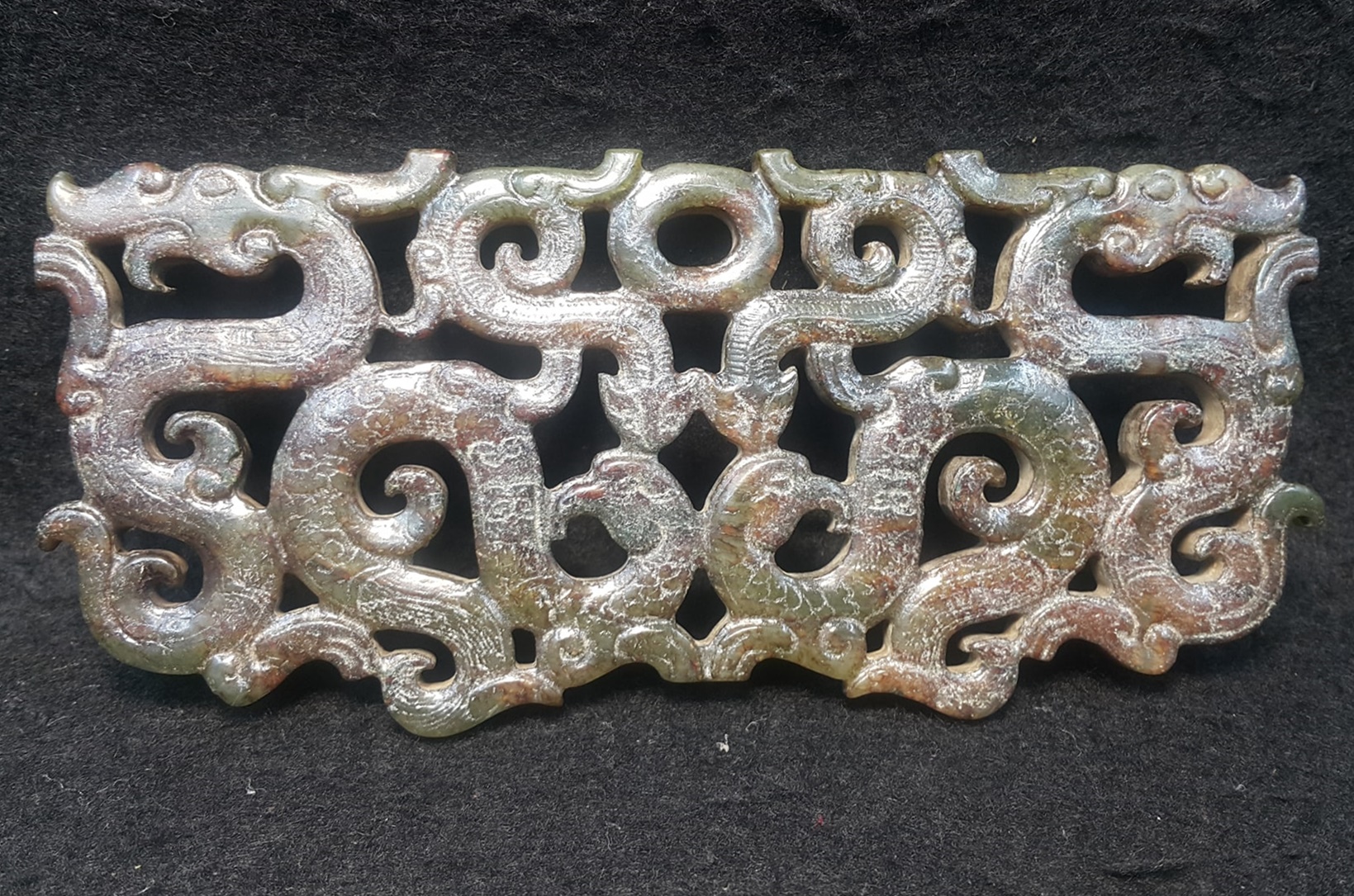 戰國-楚式鏤雕龍鳳珮-青花玉-長13.5公分