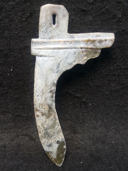 玉戈是春秋戰國古墓中常見的陪葬物件,其型制仿先秦時代的青銅戈,雕琢而成。