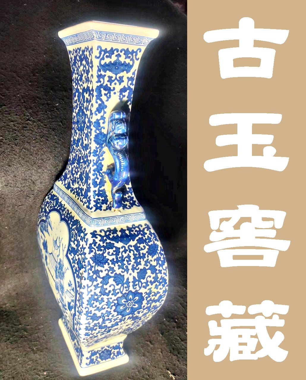 龍形雙耳青花瓶-大清康熙年制