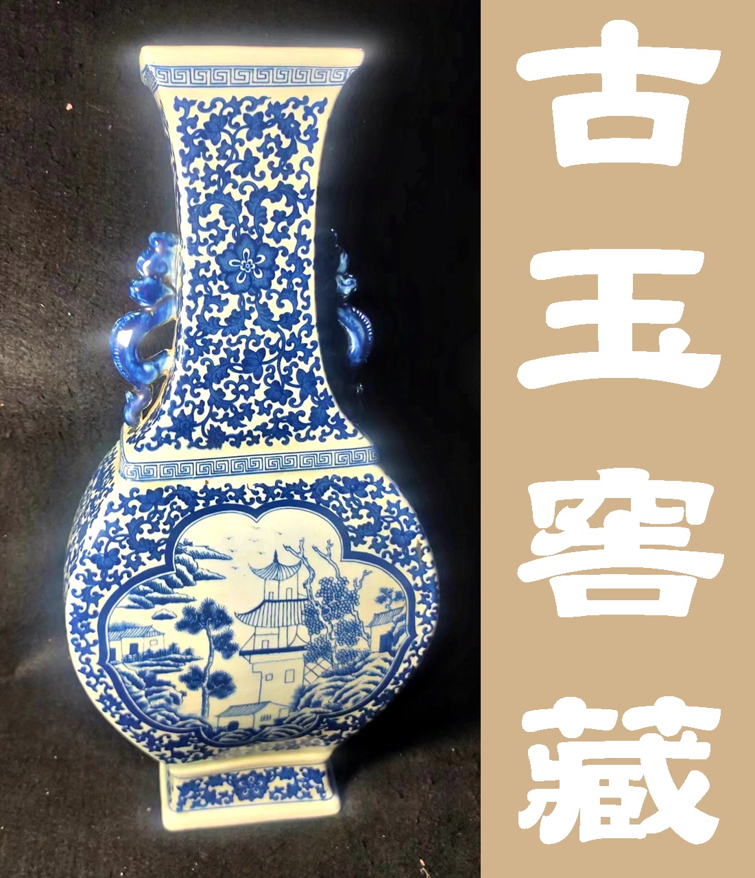品名:龍形雙耳青花瓶,
