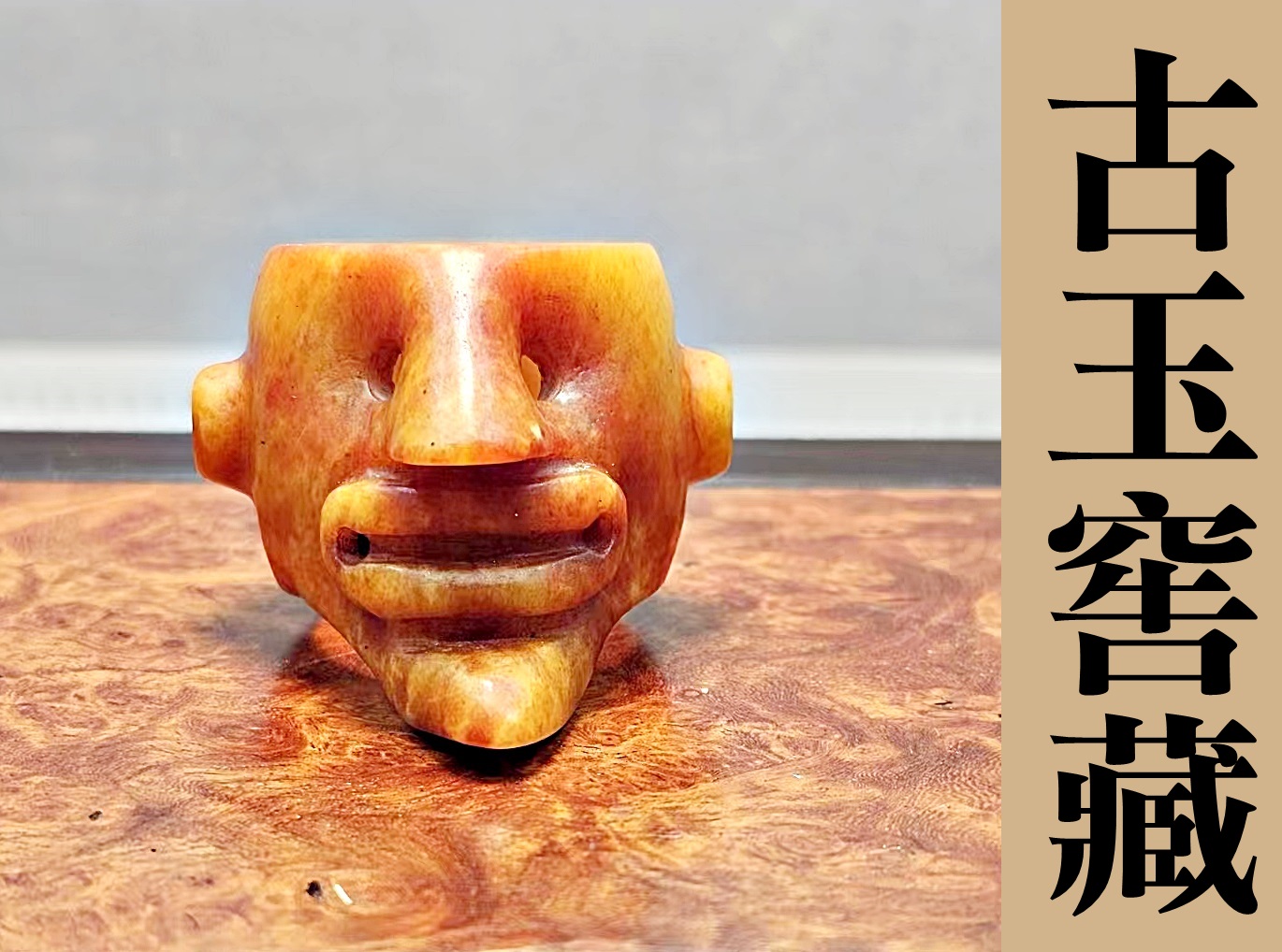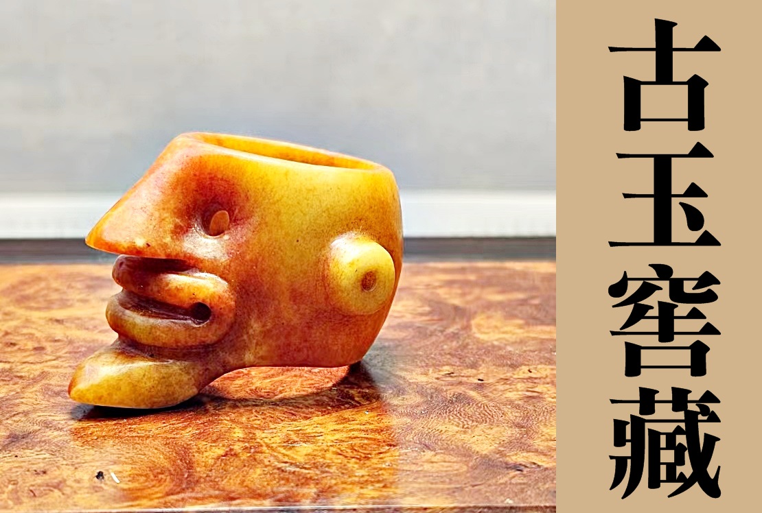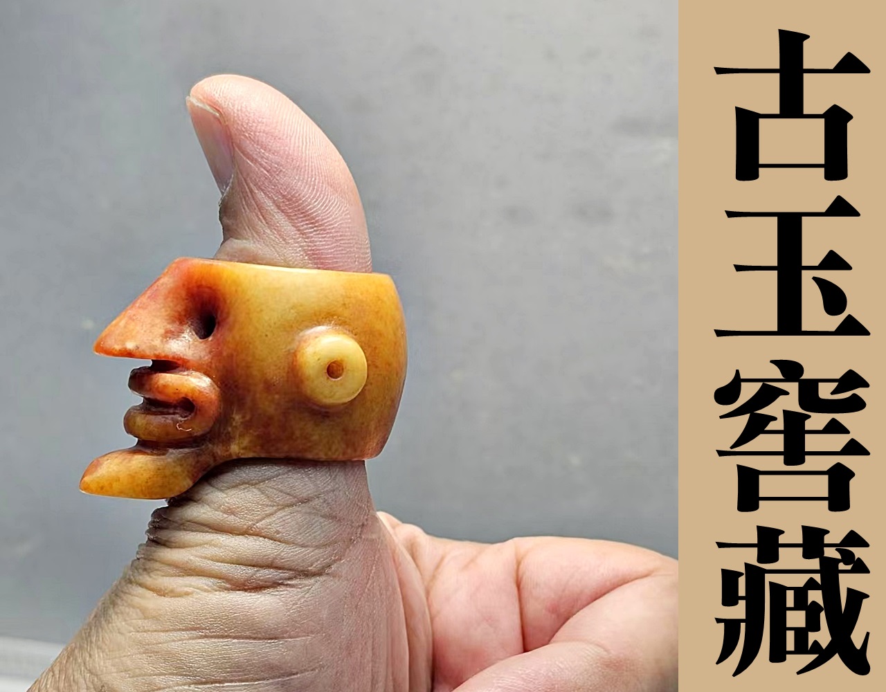 如今日所展這件神人首板指,應是當時巫師掌權的信物,其面目奇特,具有神密和威嚇感。