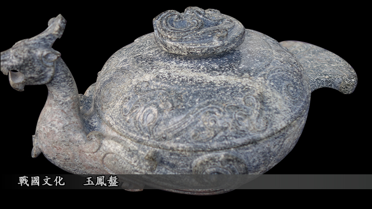 漢代以前玉乃帝王諸侯專屬之物。所謂玉都,指的是京城所在地。古代王公貴族為體現自我的財富與地位,常將玉做成禮器,擺件,配飾品,更有將其雕制成餐具或實用器具。此玉鳳盤之形制及大件來看,應屬宮中的實用器物,其鳳首身形流暢,盤蓋上雕有龍形鈕扣,氣勢非凡,實有皇家風範之勢。