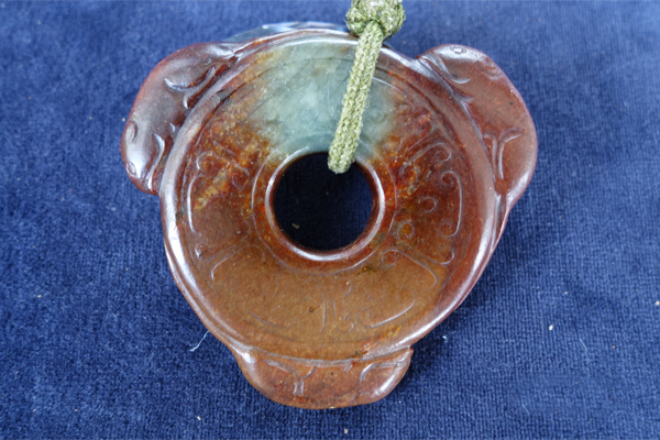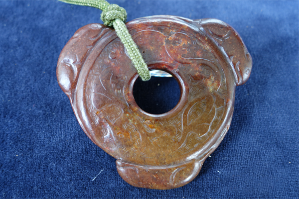 J3 年代: 唐代 品名: 望子成龍璧 玉料: 和闐青玉 規格(寬×高×厚-公分): Ø7.5×0.6