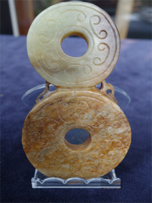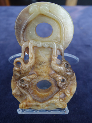 M4 年代: 明代 品名: 雙龍合璧 玉料: 和闐黃玉 規格(寬×高×厚-公分): 5.2×9.5×2