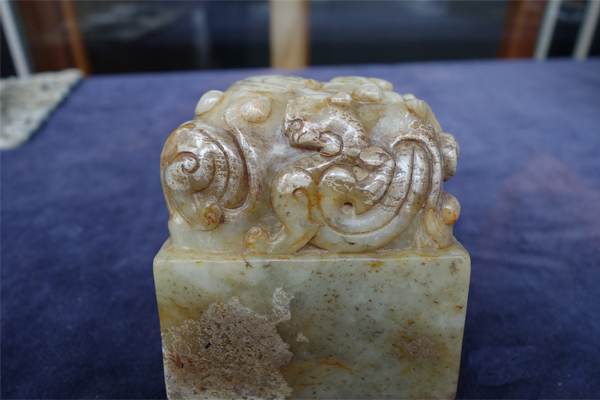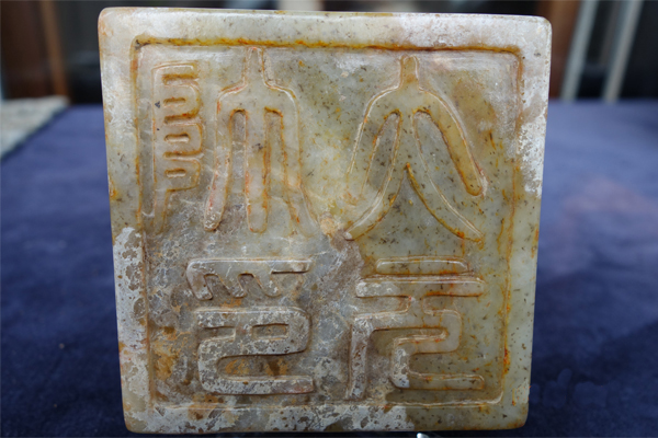 M12 年代: 明代 品名: 太元師印 玉料: 白玉 規格(寬×高×厚-公分): 7.5×7.5×8.2