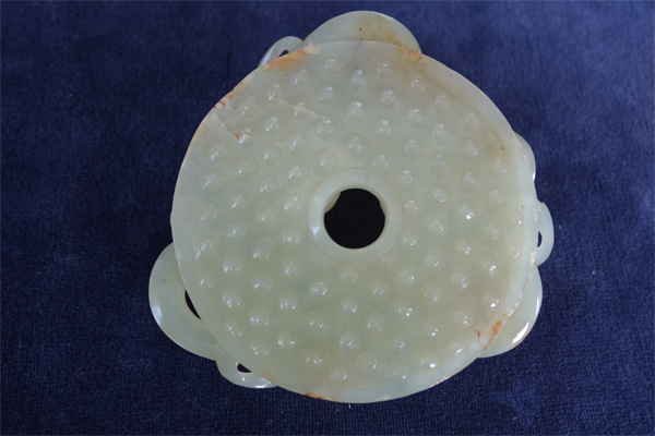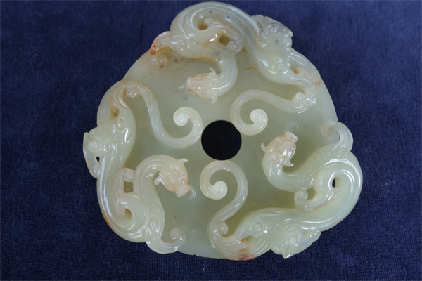 H12 年代: 漢 品名: 三龍璧 玉料: 和闐黃玉 規格(寬×高×厚-公分): 9×8.4×2