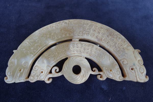 H15 年代: 漢 品名: 玉璜 玉料: 白玉 規格(寬×高×厚-公分): 13×6×0.8