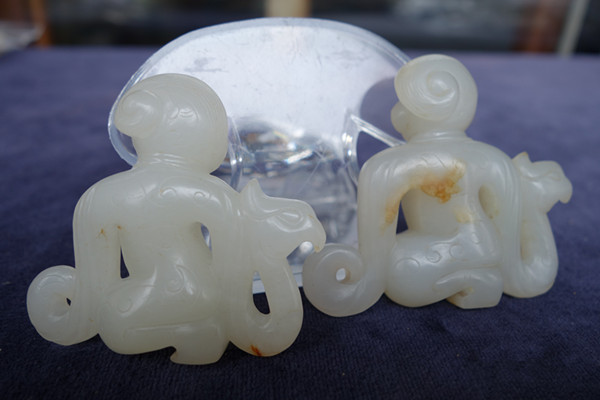 K6 舞人 玉料: 和闐白玉 規格(寬×高×厚-公分): 5.2×4.8×1.2(一對)