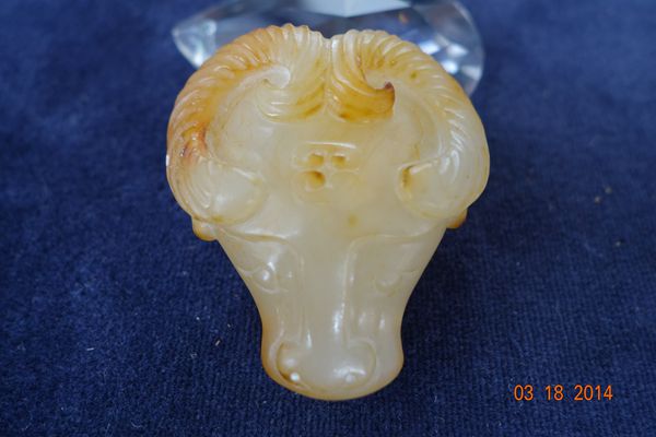 K16 牛首 玉料: 和闐白玉 規格(寬×高×厚-公分): 4×4.5×2