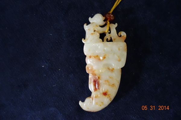 K36 鳳首珮 玉料: 白玉 規格(寬×高×厚-公分): 3.5×1.5×8.5