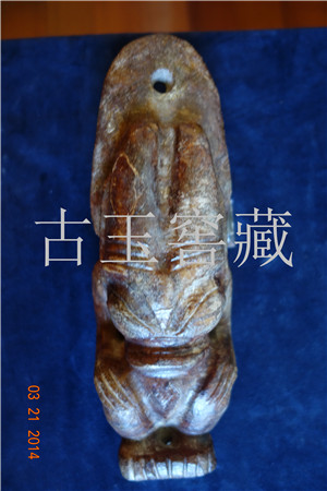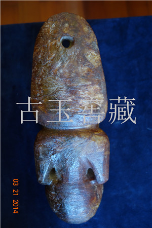 A48 紅山文化 品名:太陽人 玉料: 青玉 規格(寬×高×厚-公分): 9×25×7