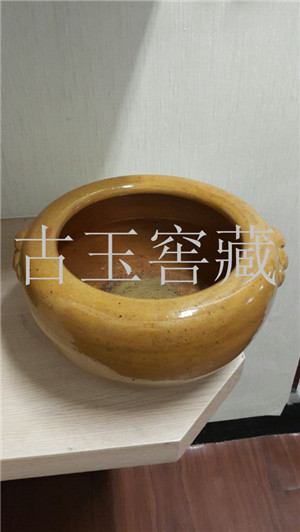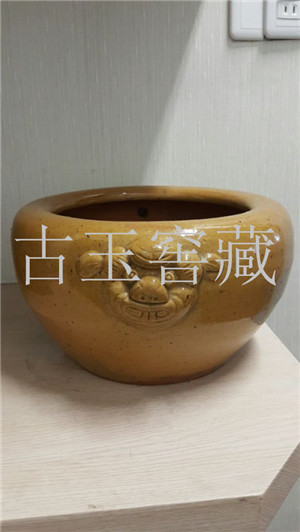 V13 年代: 民國 品名: 獅頭雙耳缸 玉料:黃釉陶器
