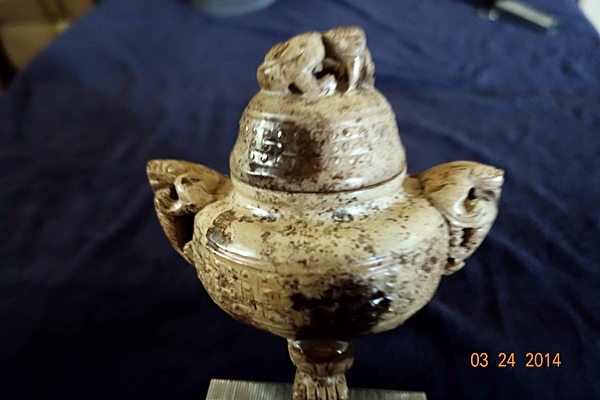 H82 年代: 西漢 品名: 玉爐 玉料: 青玉 規格(寬×高×厚-公分): 12×