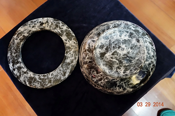 B179 品名: 玉碗 玉料:青玉 規格(寬×高×厚-公分): Ø 22×7