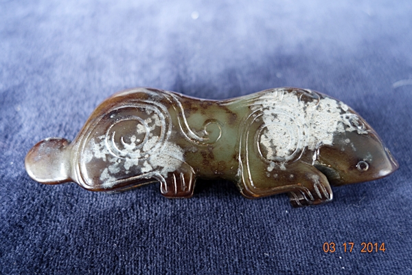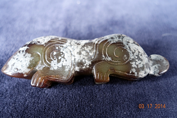 D2 品名: 玉虎 玉料: 和闐青玉 規格(寬×高×厚-公分): 8.8×3×1.3