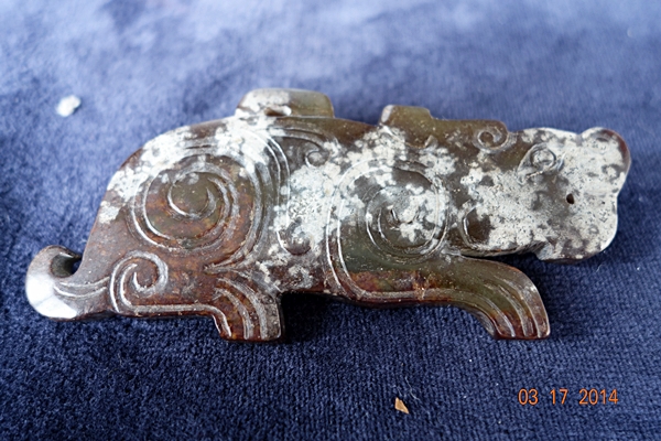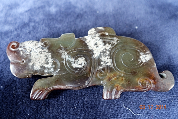 玉虎 玉料: 和闐青玉 規格(寬×高×厚-公分): 9.5×4.3×0.6