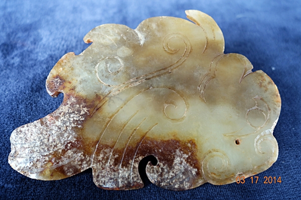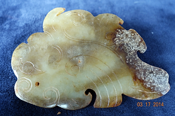 D5 品名: 玉鳥珮 玉料: 和闐白玉 規格(寬×高×厚-公分): 11×7×0.4