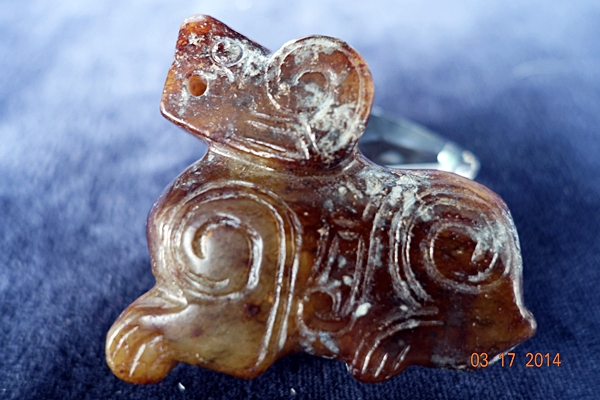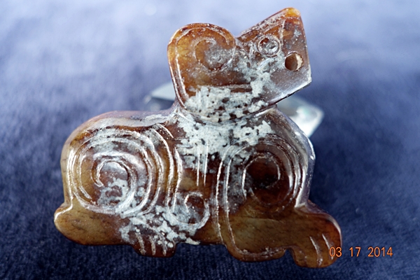 D13 年代: 商晚期 品名: 玉狗 玉料: 和闐青白玉 規格(寬×高×厚-公分): 5×4.5×2