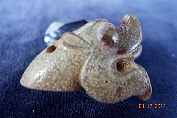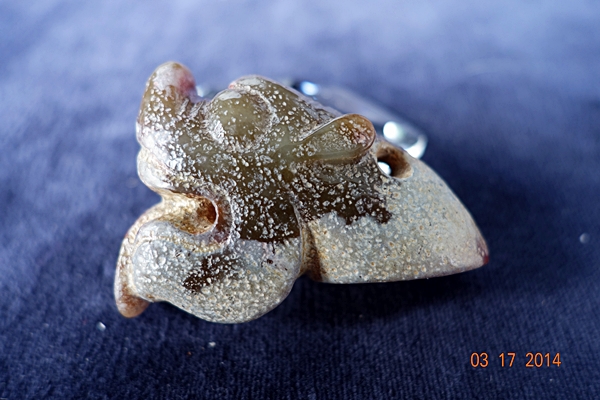 D14 年代: 商中期 品名: 玉狗首 玉料: 青玉 規格(寬×高×厚-公分): 5×3.8×2