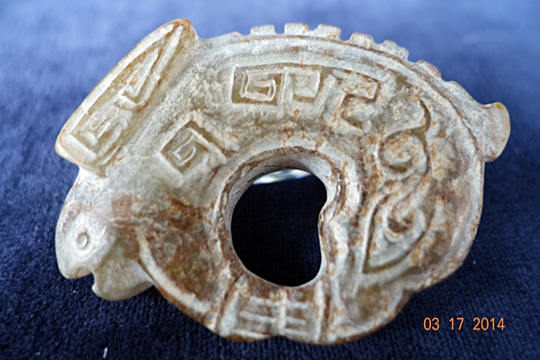 D15 年代: 商晚期 品名: 玉兔 玉料: 青白玉 規格(寬×高×厚-公分): 6×4.5×1.2