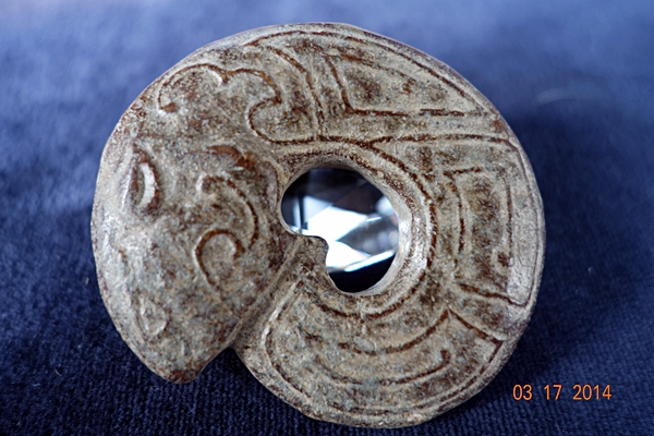 D16 年代: 商晚期 品名: 玉龍 玉料: 青白玉 規格(寬×高×厚-公分): 4.5×5×1