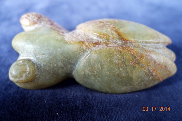 D20 年代: 商早期 品名: 玉蟬 玉料: 青玉 規格(寬×高×厚-公分): 4.5×8.8×3