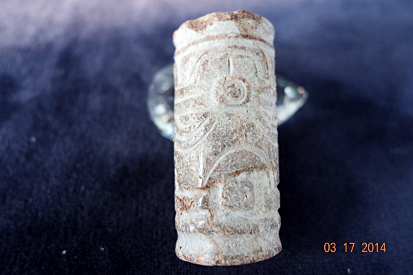 D21 年代: 商中期 品名: 玉勒子 玉料: 白玉 規格(寬×高×厚-公分):Ø 2.3×5
