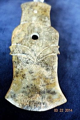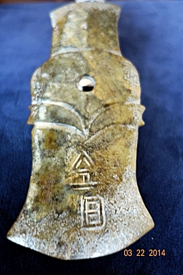 D26 年代: 商中期 品名: 玉斧 玉料: 青玉 規格(寬×高×厚-公分): 7×14×0.4