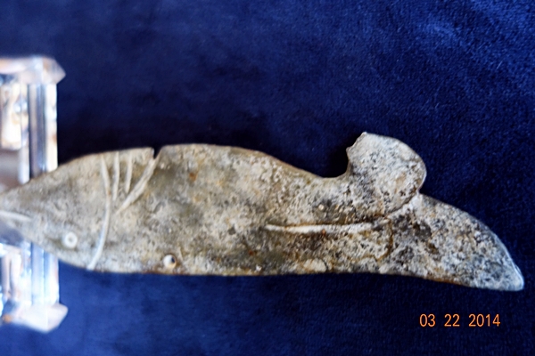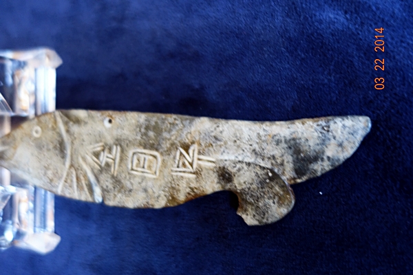 D29 年代: 商中期 品名: 玉魚 玉料: 青玉 規格(寬×高×厚-公分): 4×16×0.4
