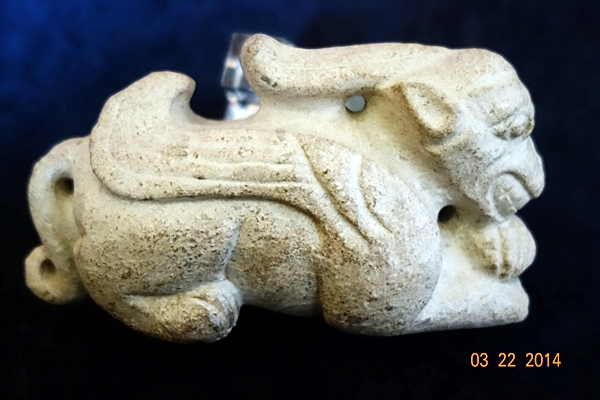 D46 年代: 商中期 品名: 玉獸 玉料: 青白玉 規格(寬×高×厚-公分): 17×9×6