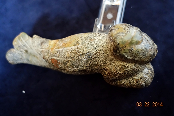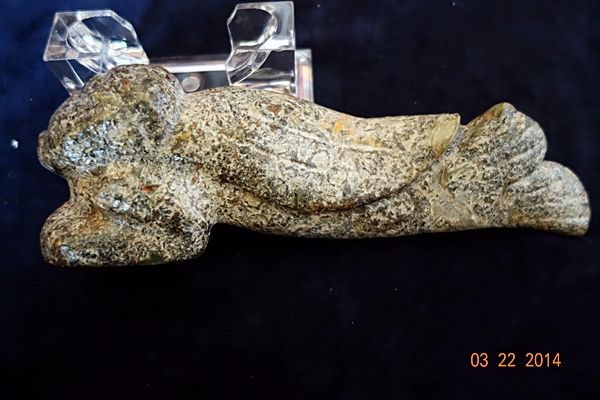 D83 年代: 商中期 品名: 人頭魚 玉料: 青玉 規格(寬×高×厚-公分): 20×6×5