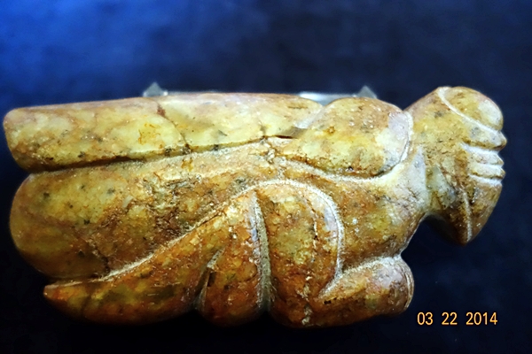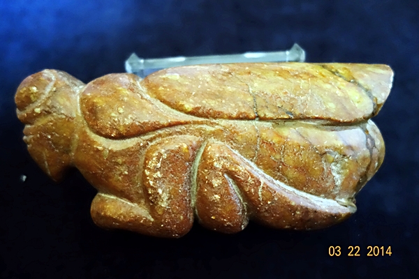 D90 年代: 商中期 品名: 玉螳螂 玉料: 青白玉 規格(寬×高×厚-公分): 16.5×7×5