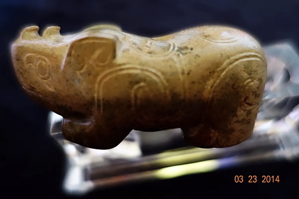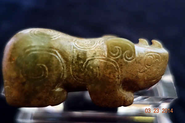 D100 年代: 商晚期 品名: 犛牛 玉料: 青玉 規格(寬×高×厚-公分): 7×3×3