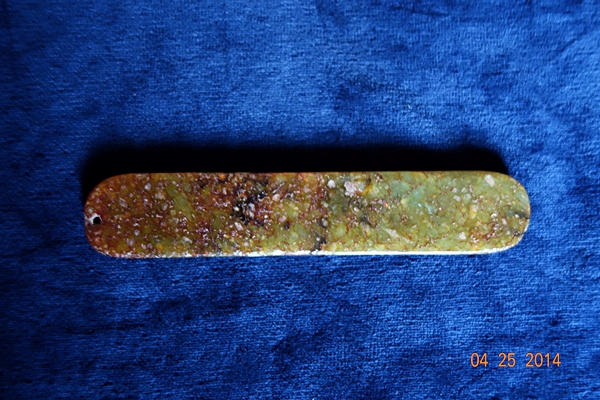 D105 年代: 商 品名: 搓板形器 玉料: 青玉 規格(寬×高×厚-公分): 2.5×12×0.5