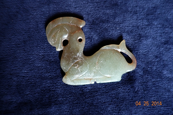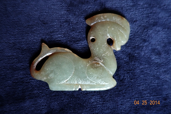 D107 年代: 商 品名: 馬形珮 玉料: 青玉 規格(寬×高×厚-公分): 6.5×5×0.4