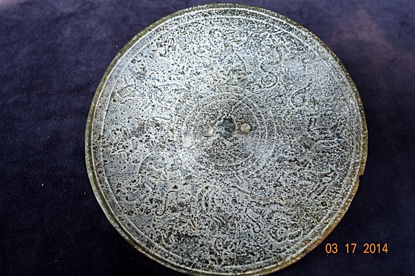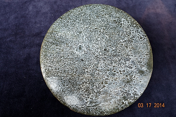 D114 年代: 商 品名: 玉鏡 玉料: 青玉 規格(寬×高×厚-公分): Ø 17×1.8