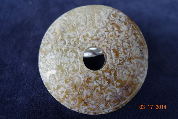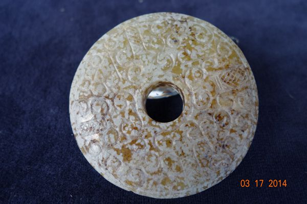 E8 年代: 西周 品名: 玉璧 玉料: 青白玉 規格(寬×高×厚-公分): ? 5.8×0.5