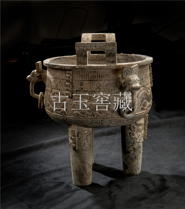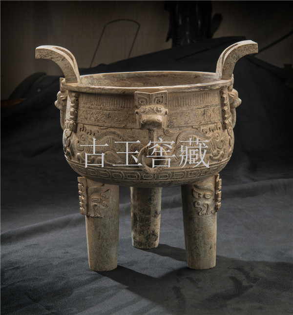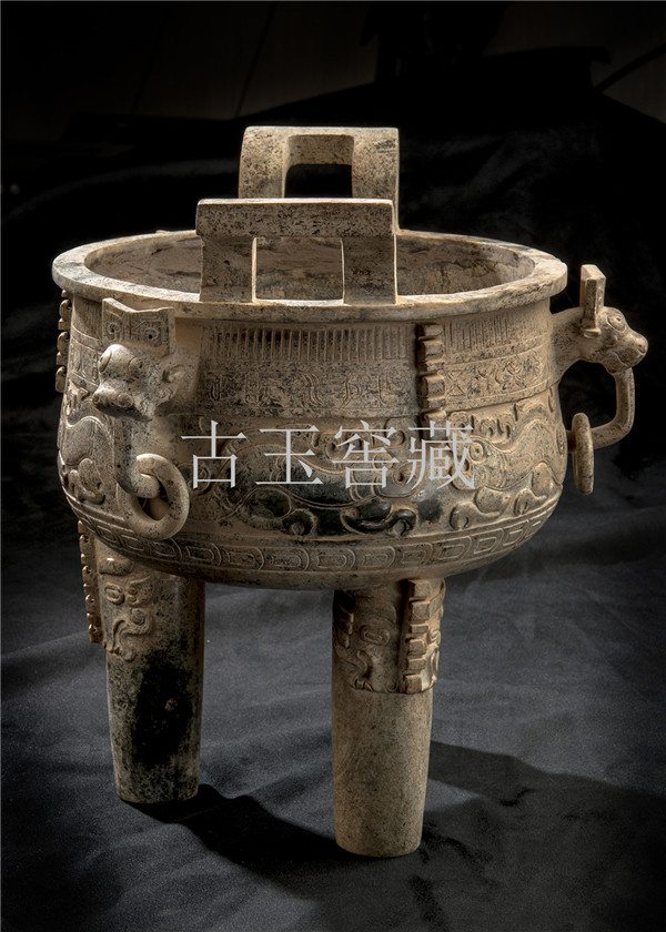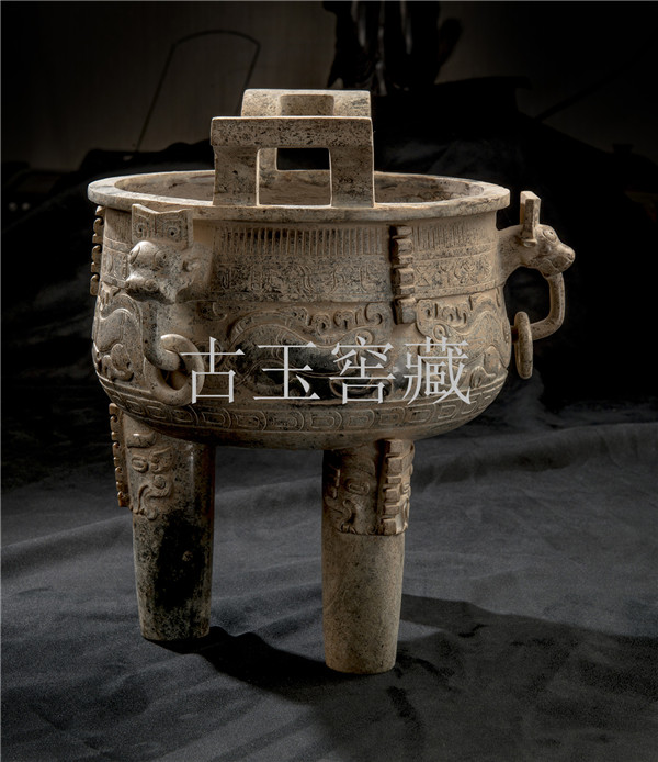 E12 年代:西周 品名:玉鼎 玉料:和闐白玉 規格(寬×高×厚-公分):30×30×32