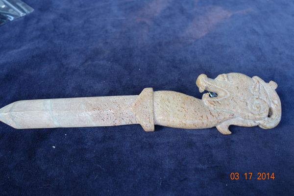 G5 年代: 戰國時代 品名: 玉劍 玉料: 白玉 規格(寬×高×厚-公分): 5.8×27×2