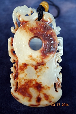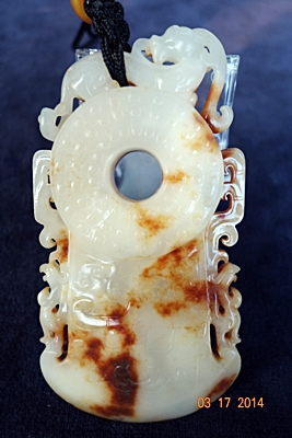 G12 年代: 戰國時代 品名: 獸面玉珠 玉料: 和闐白玉 規格(寬×高×厚-公分): 5.5×10.5×1.5