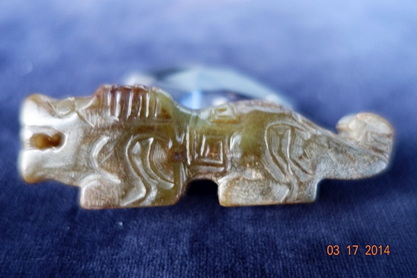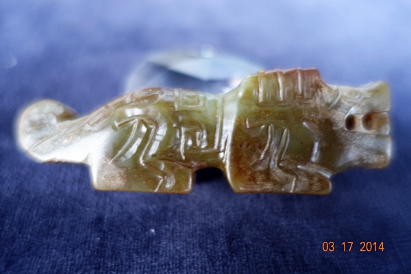G20 年代: 戰國時代 品名: 玉虎 玉料: 和闐青玉 規格(寬×高×厚-公分): 7×2.2×2
