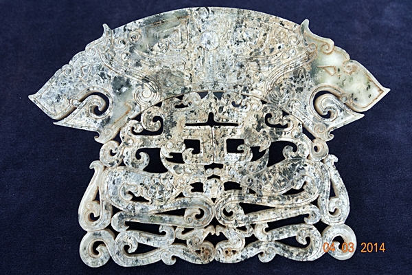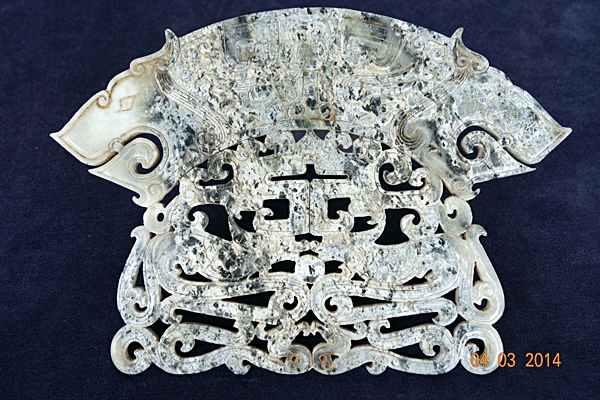 G29 年代: 戰國時代 品名: 玉璜 玉料: 青花玉 規格(寬×高×厚-公分): 22×15.5×0.5