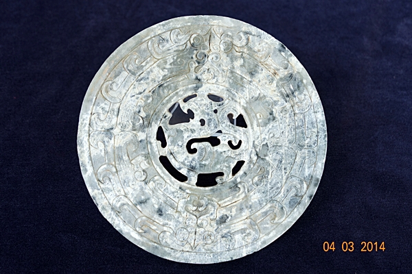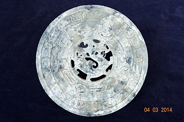 G30 年代: 戰國時代 品名: 玉璧 玉料: 青花玉 規格(寬×高×厚-公分): Ø 1 2.5×0.5